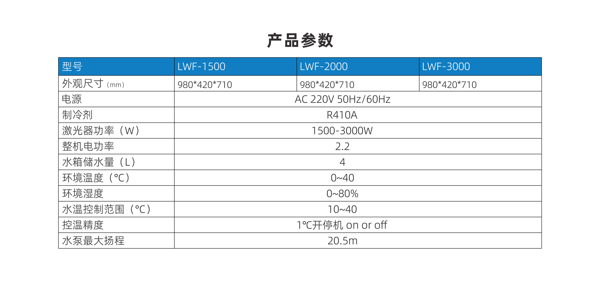 | 型號(hào) | LWF-1500 | LWF-2000 | LWF-3000 |